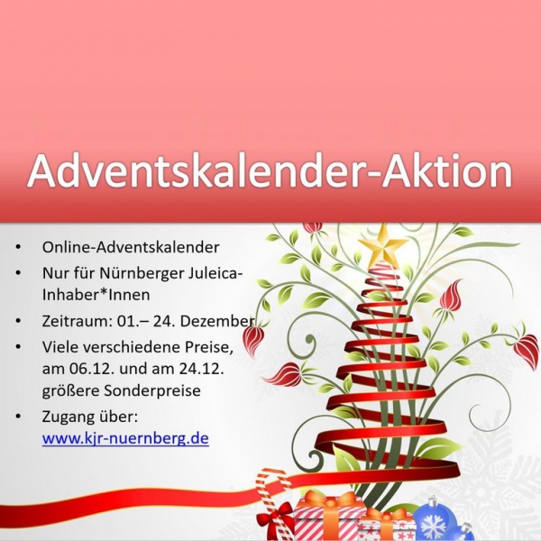 In der Zeit vom 1.-24. Dezember 2025 verlosen wir wieder viele tolle Preise unter allen Juleica-Inhaber*innen in der Stadt Nürnberg.